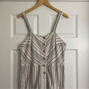 Universal Thread Linen Blend Jumpsuit Neutral Stripes Wide Leg