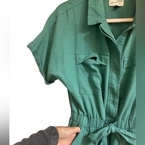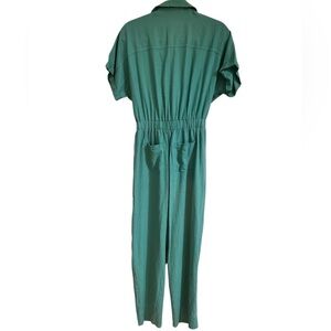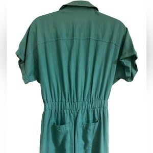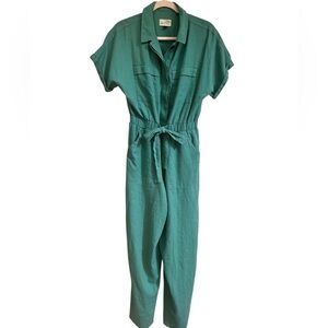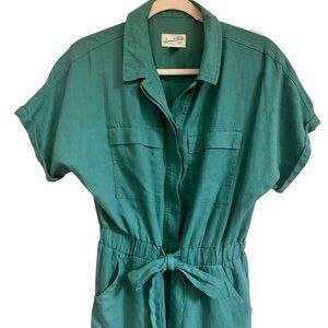 Universal Thread Linen Blend Short Sleeve Tie Waist Green Utility Jumpsuit Sz 4