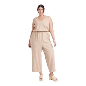 Universal Thread Linen Jumpsuit Plus Sz XXL Tan VNeck Cutout Back Elastic Waist