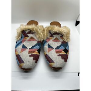 Universal Thread Litzy Aztec Printed Slip-On Mules Faux Fur Trim Womens 8.5