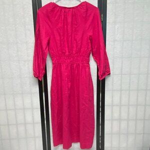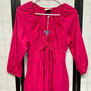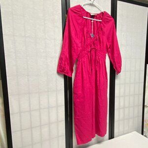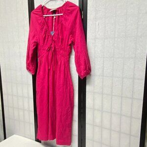 Universal Thread Long Sleeve Peasant Corset Top Linen Midi Dress Fuchsia NWT
