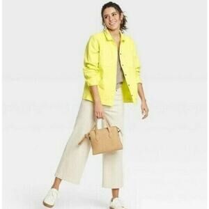 This stylish denim jacket from Universal Thread is perfect for any occasion. With long sleeves and a mid-length cut, it is suitable for both winter and summer. The snap front closure and classic fit make it easy to wear and comfortable for any body type. The bright yellow color adds a pop of color to any outfit, and the solid pattern and denim fabric provide a timeless, versatile look.