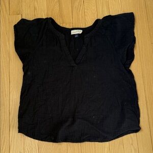 Universal Thread women's black V-neck top with subtle texture. Lightweight breathable fabric. Simple and versatile for everyday wear.