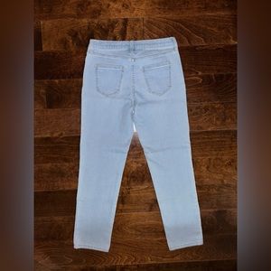 Brand new never worn light colored washout jeans with small patchwork mid length no holes. Bought the regular size instead of the long/tall ones. Adorable cute for any occasion