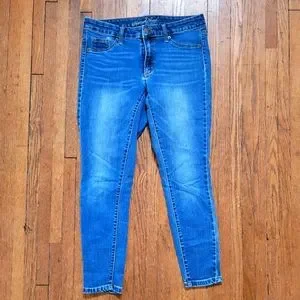 Light/medium wash Jeggings, size 8. Jeans have been loved and show some signs of wear, all pictured. Very soft and comfortable! Color is best shown in the last pictures.