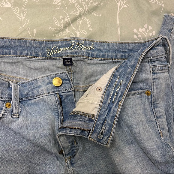 Stylish mid rise jeans in light blue. A classic cutoff skinny jean. Ideal for everyday wear.