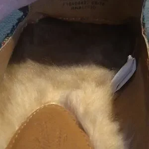 Vibrant mules with a bold pattern. Fur lined. Perfect for casual wear. Adds a colorful touch to any outfit.