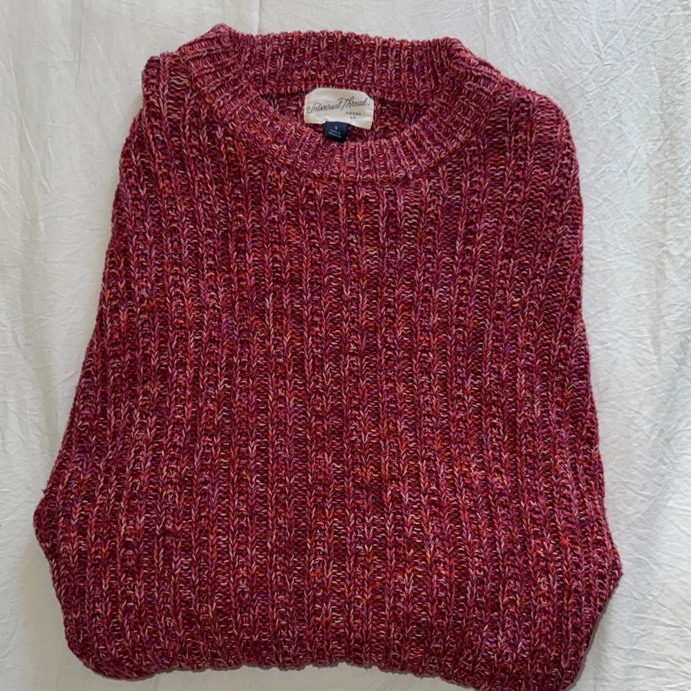 Vibrant sweater with ribbed/knitted texture. Mix of red, pink, purple and a hint of cream and orange. Only worn 1x. Very cozy. From Target brand Universal Thread