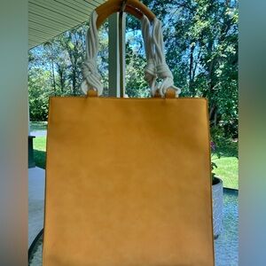 Stylish mustard tote with sturdy rope handles. Perfect for everyday use.
