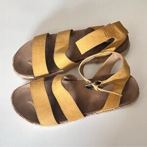 Cute and trendy style Universal Thread Mustard Yellow Platform Sisal Cork Strappy Buckle Sandals