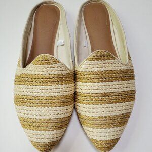 Universal Thread Mustard Yellow Striped Slip On Boho Mules Women's Size 10