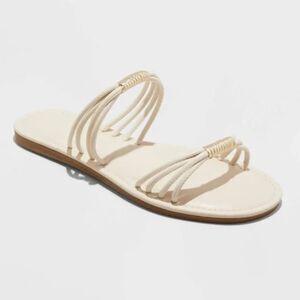 Universal Thread NEW Cream Aura Two Band Slide Sandals Size 8/8.5 Flats Gold