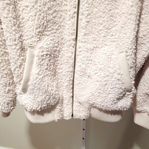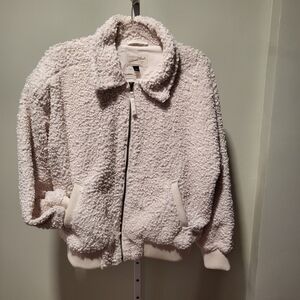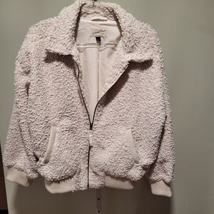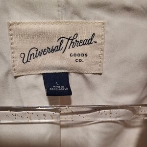 Universal Threads size Large, cream color,front zipper, 2 front pockets,a heavy weight bomber jacket,wear autumn, winter, spring,and on very cold summer nights.NWOT.