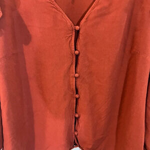 Universal Thread NWOT Burnt Orange Button Up Blouse Plus Size XXL Ruffle Sleeves