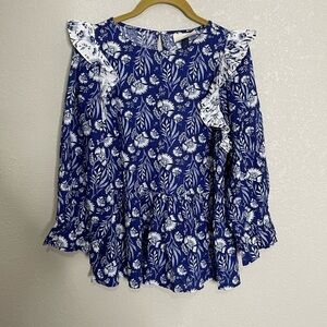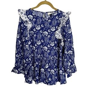 Universal Thread NWT Blue Ruffle Shoulder Floral Blouse XS