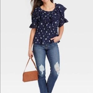 Universal Thread / NWT/ 100% cotton / Women's Ruffle Short Sleeve Eyelet Peplum Blouse - Blue and White / S / sold out everywhere