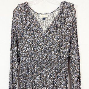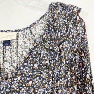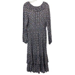 Universal Thread Navy Blue Floral Ruffle Cottagecore Long Sleeve Dress - SMALL