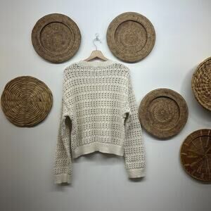 Universal Thread Neutral Off White Cream Open Knit Crew Neck Sweater XL Boho