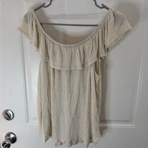 Universal Thread Off Shoulder Ruffle Button Front Top L