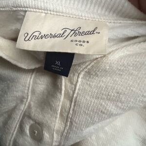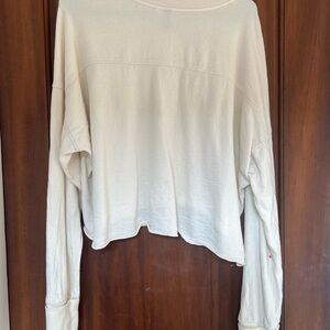 Stylish cream long sleeve Henley top. Features button details. This is discontinued and is a cute, causal sweater that is lightweight and perfect for many occasions! This has only been worn one time!