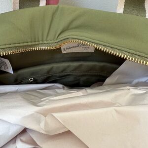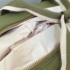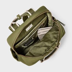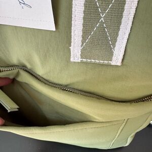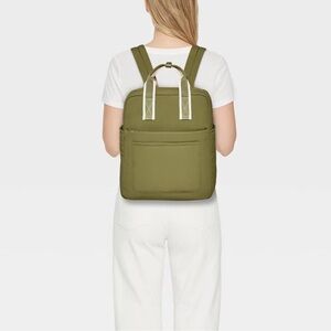 The NWT Square Backpack tote by Universal Thread in Green Olive is a stylish and practical accessory for women on the go. solid pattern, zip closure, and green and cream handles and solid green straps Zipper is gold color Note. There is a light spot in the fabric on front pocket see photos will Come as shown Dimensions (Overall): 14.75 Inches (H) x 12.5 Inches (W) x 4.25 Inches (D)