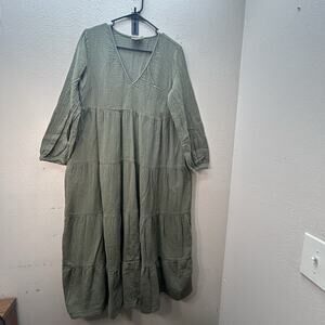 Universal Thread Olive Green Gauze Cotton Tiered Peasant Dress Pockets Sz M Fall