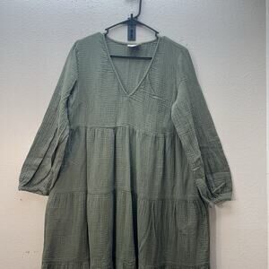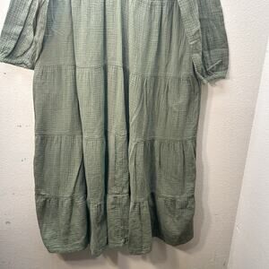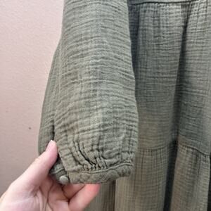 Universal Thread Olive Green Gauze 100% Cotton Tiered Peasant Dress Pockets Sz M Fall puffed sleeves