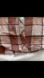 This is a Universal Thread, long-sleeved, collared plaid flannel shirt in shades of orange, white, and brown. It has a chest pocket and a button-down front closure. All the buttons are in good working condition. There is one side with a very small flaw, which can easily be sewn, otherwise great condition. The material is soft and comfortable, it is 100% rayon.