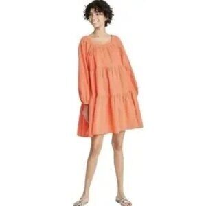 Universal Thread Orange Tiered Balloon Long Sleeve Dress