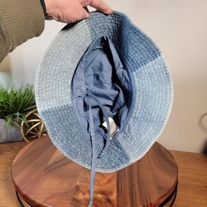 Patchwork Denim Bucket hat made of varying shades of blue denim. Soft hat with adjustable tie for fit inside. This adorable hat from 2014 gives very 90s Y2K Justin Timberlake, Brittney Spears vibes.