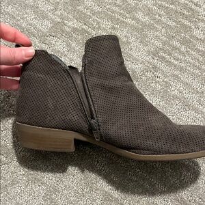 Stylish gray booties with perforated texture. Features side zipper. Perfect for everyday wear.
