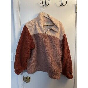 Universal Thread Pink Colorblock Quarter-Zip Sherpa Fleece Pullover Sweater XL. Condition is Pre-owned.
