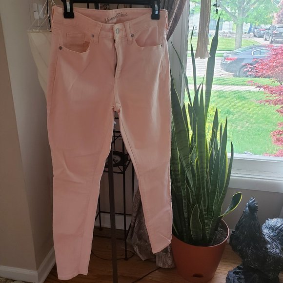 Pretty in Pink 💕 Universal Thread High Rise Skinny Pink Jeans sz 4. 9 3/4 rise 28 inseam measurements in inches & approximate.