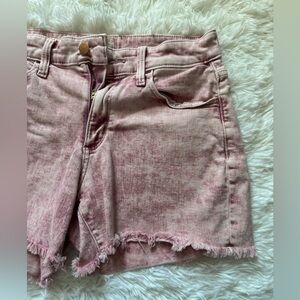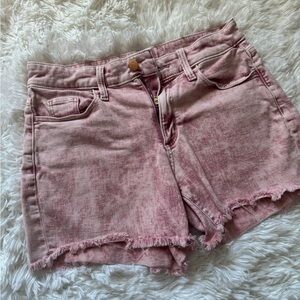Chic pink jean shorts with frayed hem. Perfect for casual wear. Size 6