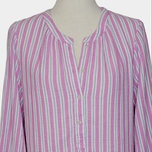 Universal Thread Pink Striped Split Button Neck Long Sleeve Gause Blouse Size S