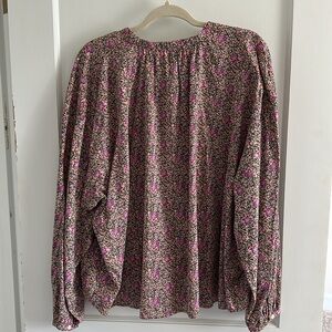 Stylish blouse by Universal Thread. Features a vibrant pink and black design. Button-up front with long sleeves. Ideal for versatile wear.
