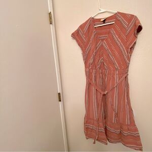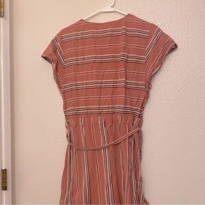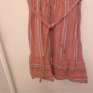 Universal Thread Pink mauve Stripe Midi Dress v neck tie waist ruffle cotton XL