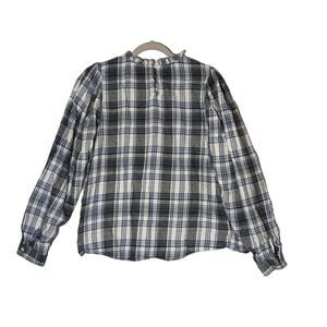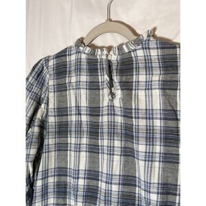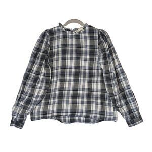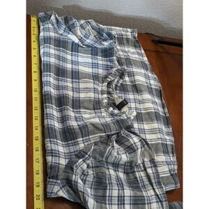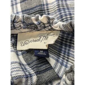 Universal Thread Plaid Flannel Shirt Medium Blue Gray Ruffle Neck Long Sleeves