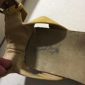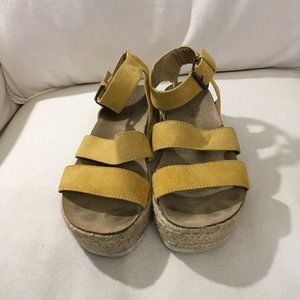 Universal Thread yellow platform sandal's with ankle straps, cork insoles, nice arch support and elastic foot strap fro your comfort. Sole width: 3.5". Platform sole 2"