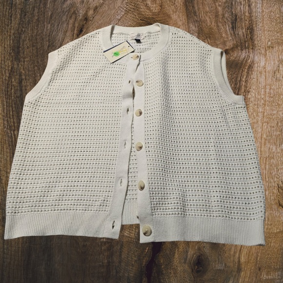 Universal Thread Pointelle Knit Button Vest Cream XXL Boho Cottagecore