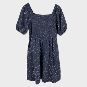 Universal Thread Puff Sleeve Dress with a smocked top and side seam pockets.
