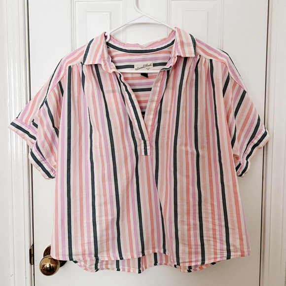 Worn once. Perfect condition. Pale pink, coral, purple, and navy stripes.