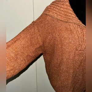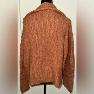 This Universal Thread pullover sweater boasts a fashionable mock neck and quarter zip design in a rich rust color. Made from a blend of polyester, spandex, cotton, and acrylic materials, this sweater is both lightweight and stretchy, making it a comfy option for any occasion. The chunky-knit pattern and casual sleeve style add a touch of coziness, while the zipper accents give it a trendy feel.