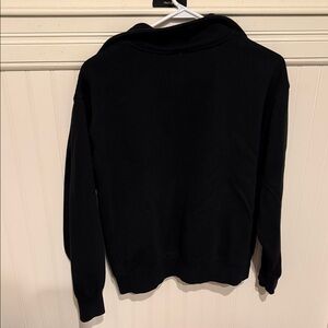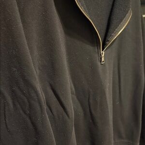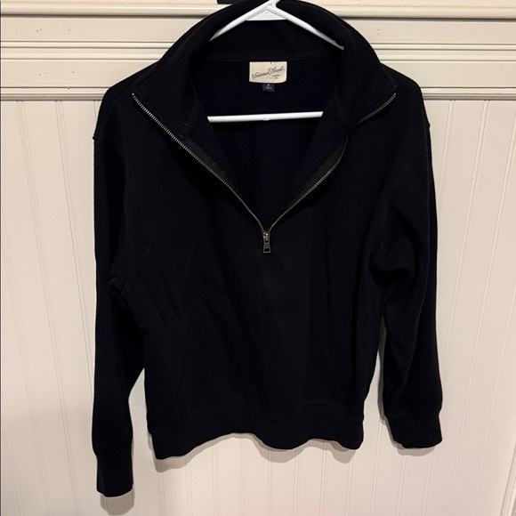 Classic pullover sweatshirt with a half-zip front. Soft fabric and relaxed fit. Stand-up collar for extra warmth. Simple, versatile wardrobe piece.