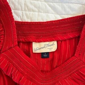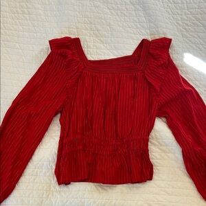 Chic red blouse featuring ruffle sleeves. Square neckline adds elegance. Ideal for versatile styling.