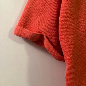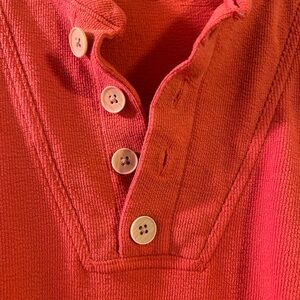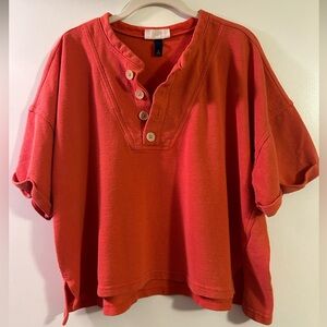 Stylish red button-down top. Features short sleeves and a comfortable fit. Perfect for casual outings.