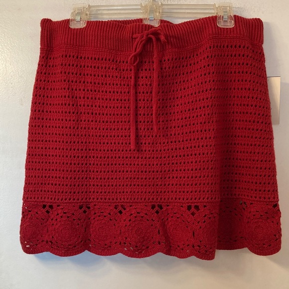 Universal Thread Red Crochet Drawstring Mini Skirt