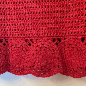 Soft crochet construction in a rich red hue. Drawstring waist for a secure fit. Scalloped crochet hem adds feminine flair. Lightweight and breathable for warm days.