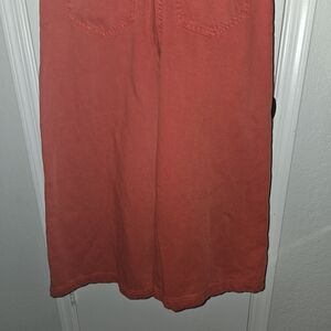 Stylish red jumpsuit. Sleeveless design. Button-up front. Perfect for casual outings.