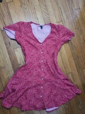 Universal Thread Red Patterned Button-Front Dress XS